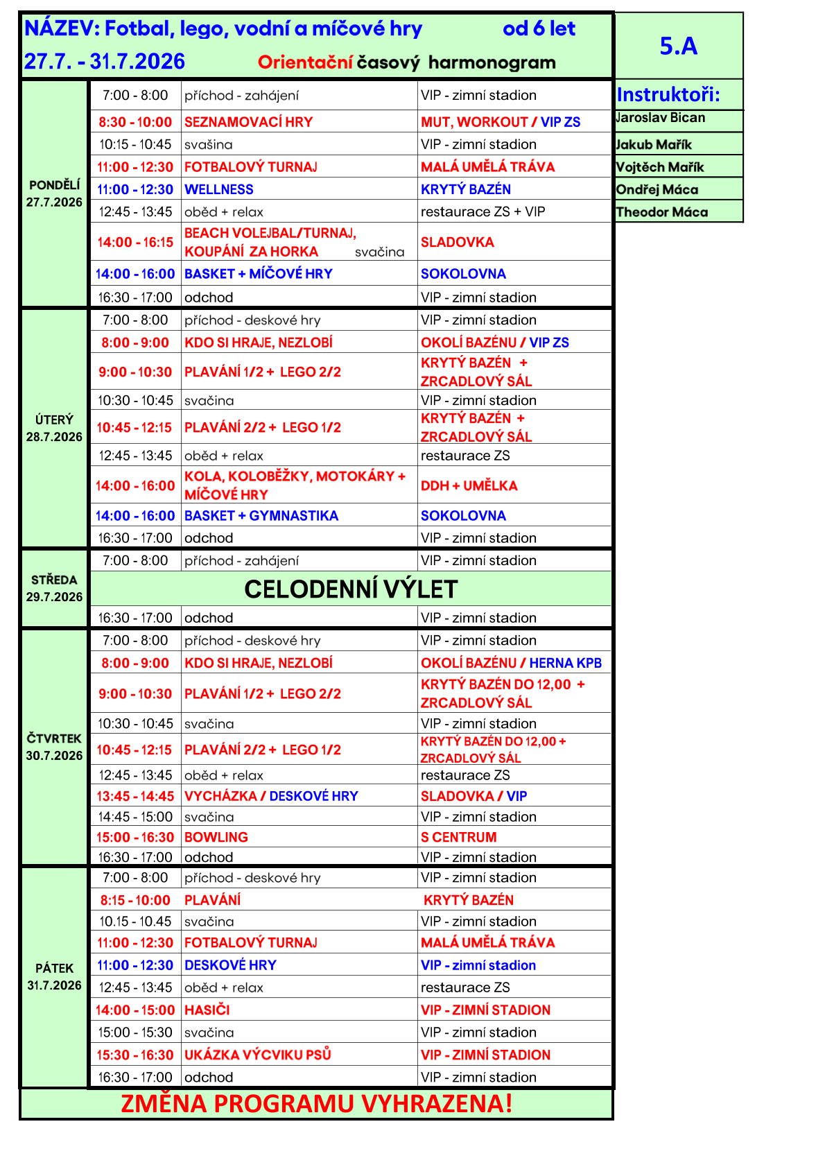 Fotbal, lego, vodní a míčové hry, 27.7. - 31.7.2026