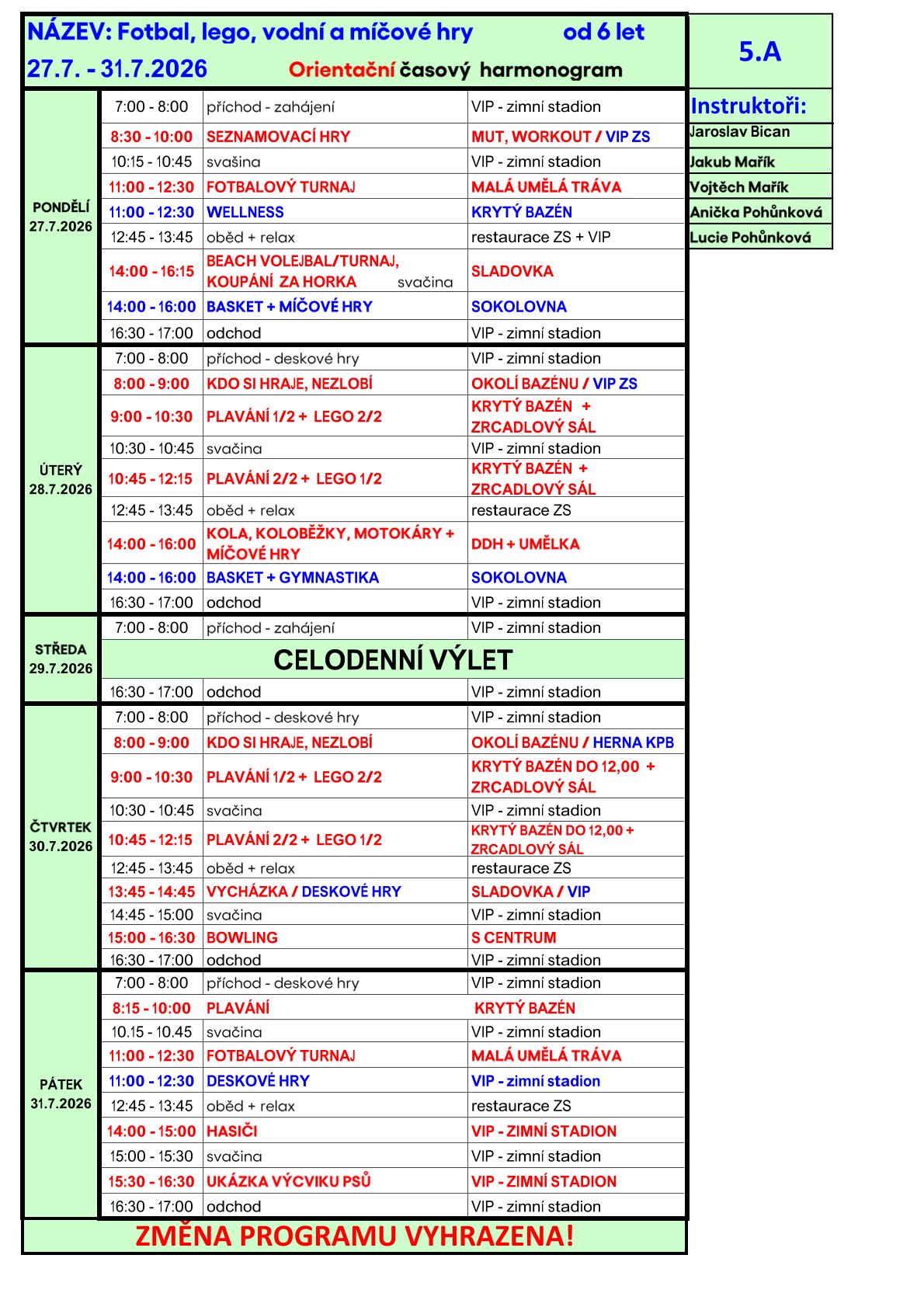 5.A běh - 27.7. - 31.7.2025