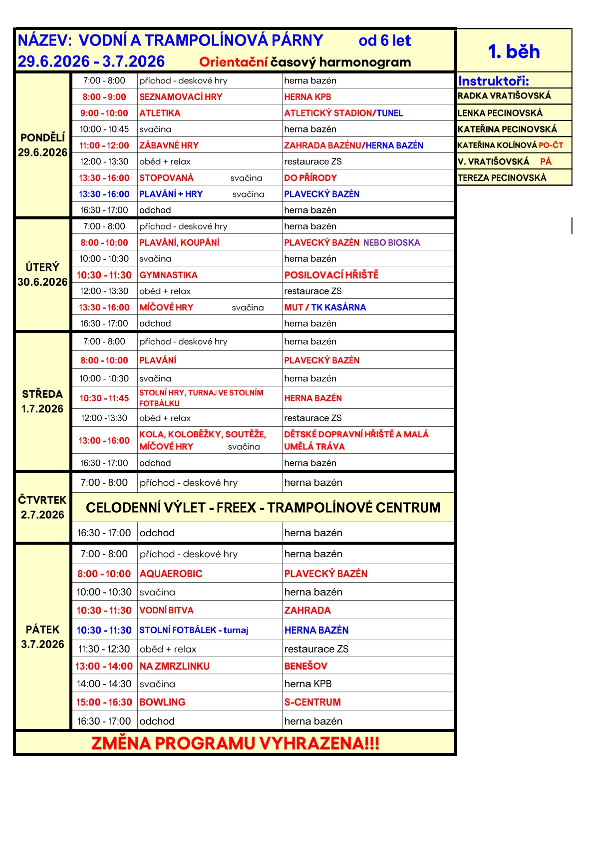 Vodní a trampolínová párty, 29.6. - 3.7.2026